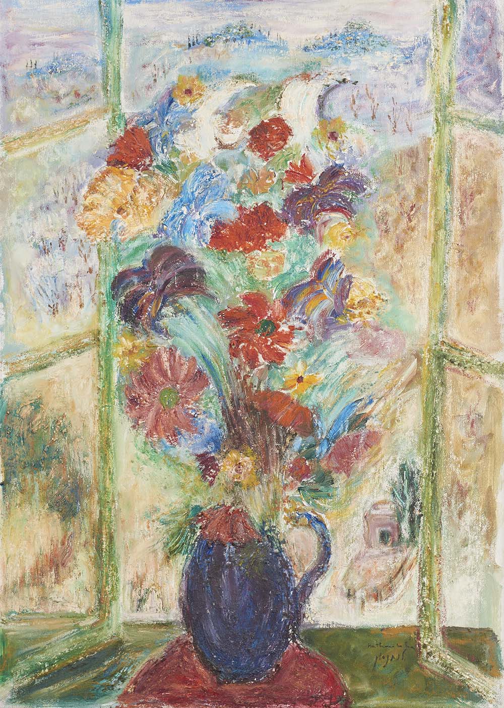 אגרטל פרחים בחלון